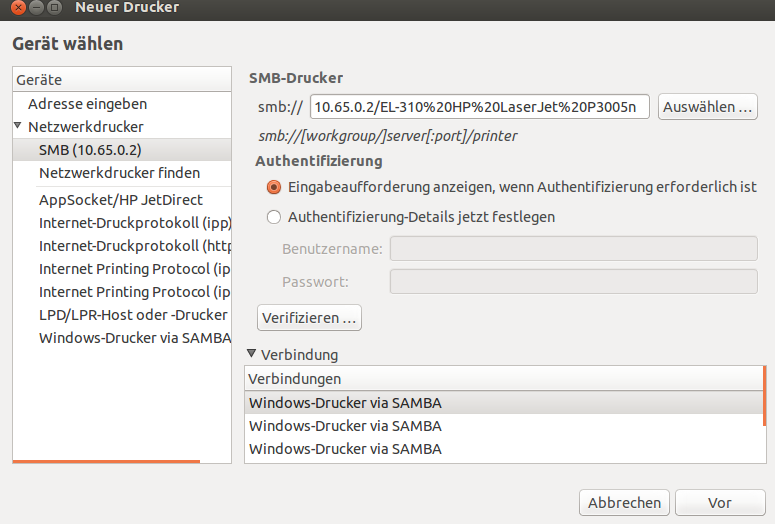 den richtigen Drucker und Treiber (z.B. Generic / PCL5) wählen und Installation fertigstellen.