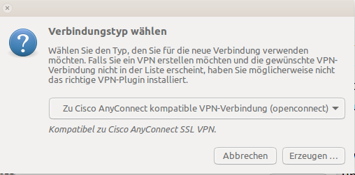 neue Verbindung einfügen und Cisco AnyConnect auswählen
