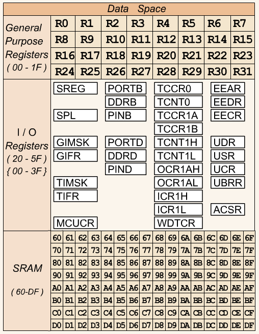 // Der AVR ATMEGA8 hat folgende Speicherbereiche