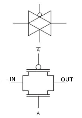 „Analog Switch“ ist ein optimiertes Transmissiongate für analoge Signale (wenig Verzerrungen beim Durchschalten wenn p- von n-Kanal übernimmt)