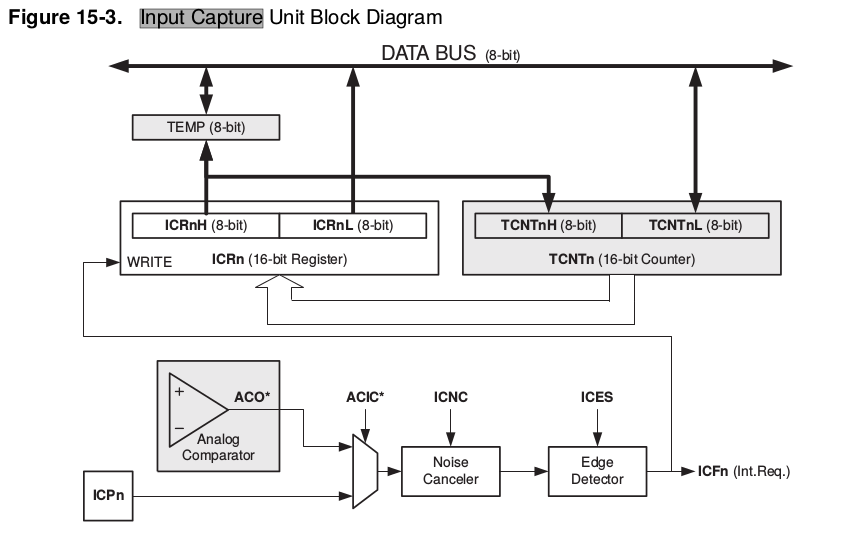 wenn das Capture Ereignis ausgelöst wurde, wird der Zählerstand von Timer1 in das Input Capture Register ICR1 gespeichert.