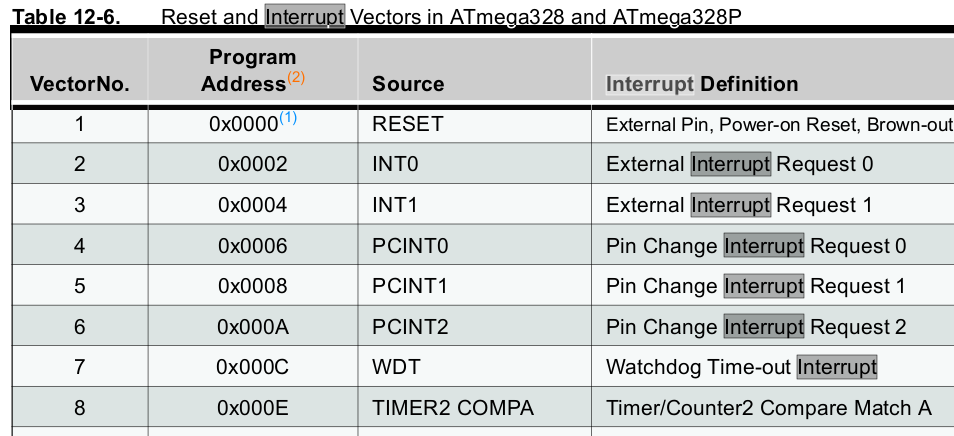 PCINT2 … (pin change interrupt 2); wird getriggert, wenn einer der Pins PCINT 23..16 aus der Pin-Gruppe 2 toggelt