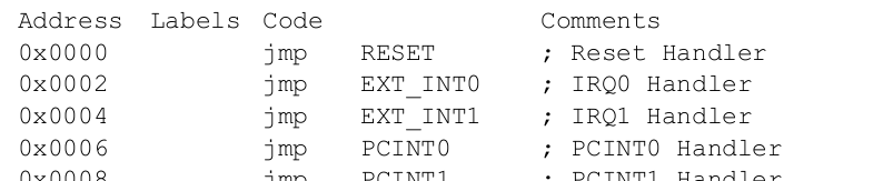 die Interrupts können an den Anfang des BOOT-Bereichs verschoben werden (IVSEL Interrupt-Vector-Select-Flag oder BOOTRST Boot-Reset-Fuse)