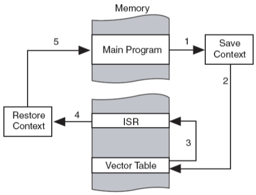 Die ISR steht auf einer fest eingebauten Adresse (= Interrupt Vector Address) am Beginn des Programmspeichers.