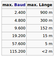 Kabellänge:Laut ursprünglichem Standard ist eine Kabelkapazität von max. 2500 pF zulässig, was bei Standardkabeln einer Kabellänge von max. 15 m
