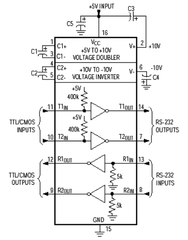 RS232 Treiber Bausteine zur Erzeugung der Hochspannung (+-10V)