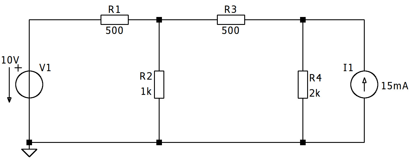 LTSpice: Superposition Beispiel mit 2 Quellen