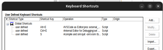 Die oben angeführten Skripte können als Shortcuts abgelegt werden und werden dann ausgeführt, wenn das Projekt-Fenster aktiv ist.