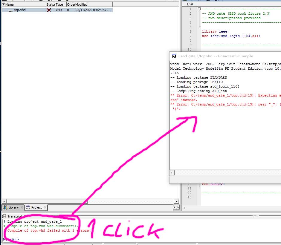 bei Fehlermeldung auf die rote Meldung doppelklicken -