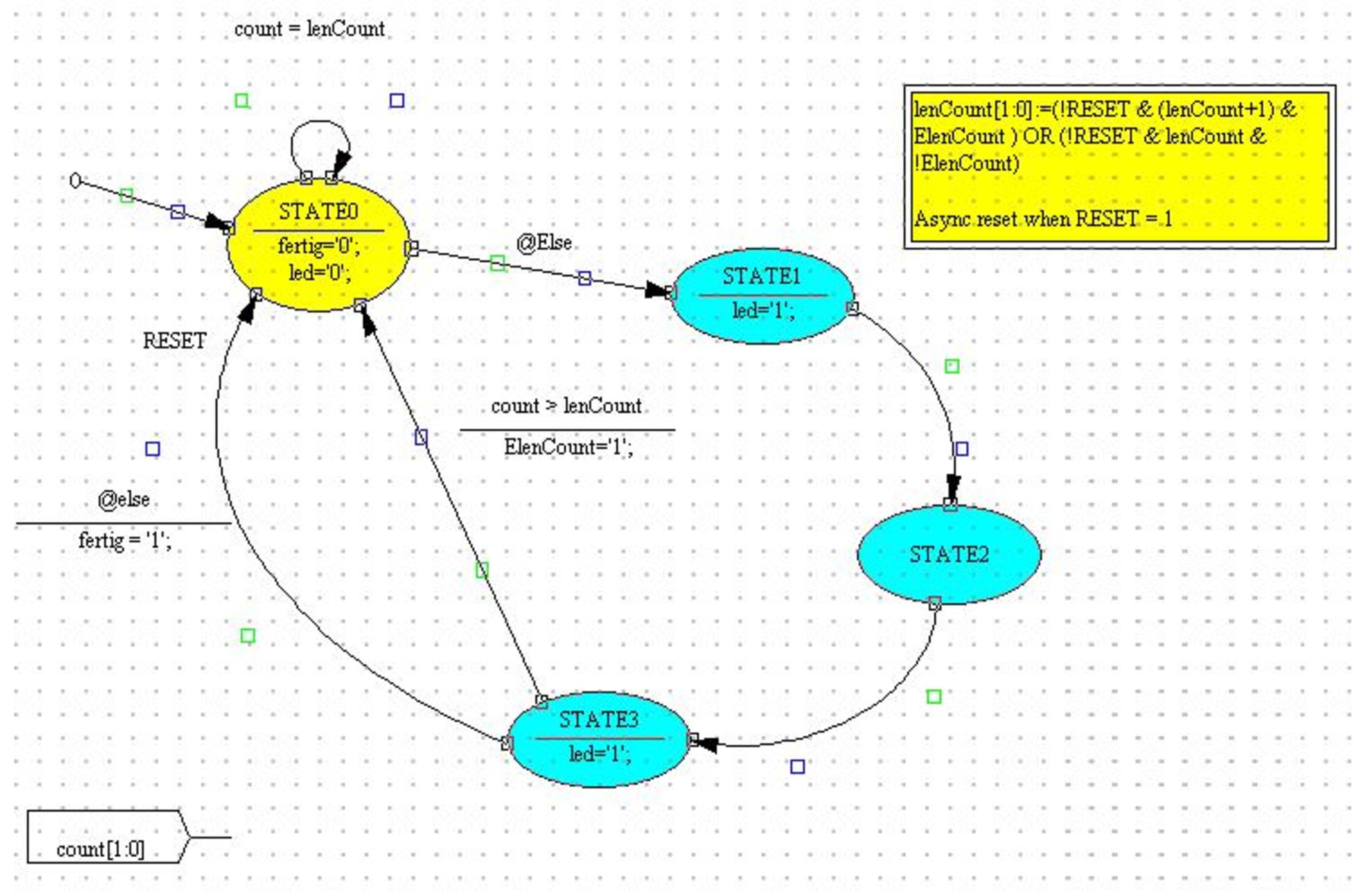 Probleme: die Statemachines müssen als VHDL-Files in das Projekt eingebunden werden, nicht als State-Diagramme (*.DIA); das System lässt nur 1 .DIA-File zu