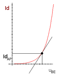 diesem sogenannten Arbeitspunk durch eine Gerade ersetzen; die Diode