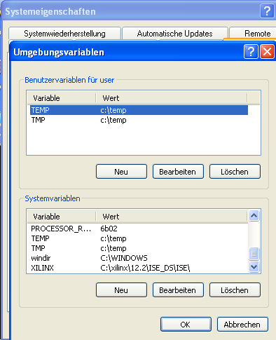 Umgebungsvariablen Set XILINX=C:\xilinx\12.2\ISE_DS\ISE\
