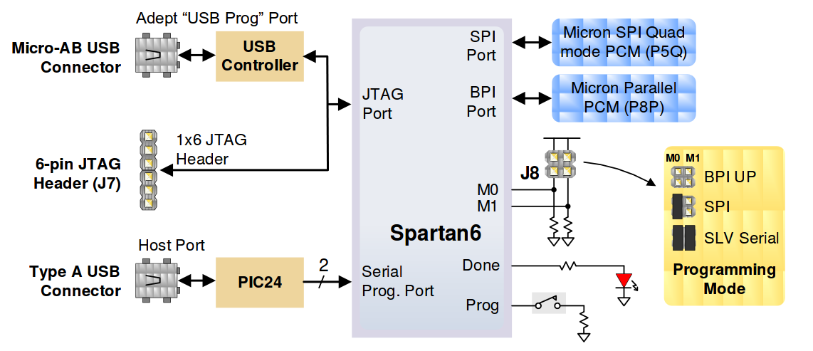 Memory-Tab von Adept2: Bit File auswählen (nicht von Netzlaufwerk!), SPI Flash auswählen und Programmieren.