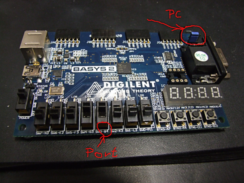 Das Board kann im RAM- oder im ROM-Modus betrieben werden; für unsere Übungen verwenden wir RAM-Modus (d.h. nach Stromausschalten sind ist das FPGA gelöscht) ==> JP3 auf PC stellen