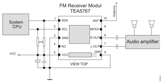 https://github.com/andykarpov/TEA5767/tree/master/examples/SimpleRadioFM /* * TEA5767.h * defintions for TEA5767 FM radio module. * Created by Andrey Karpov * Based on this project: http://kalum.posterous.com/arduino-with-tea5767-single-chip-radio-and-no * * This program is free software; you can redistribute it and/or modify it * under the terms of the GNU General Public License as published by the * Free Software Foundation; either version 2, or (at your option) any * later version. * * This program is distributed in the hope that it will be useful, * but WITHOUT ANY WARRANTY; without even the implied warranty of * MERCHANTABILITY or FITNESS FOR A PARTICULAR PURPOSE. See the * GNU General Public License for more details. * * You should have received a copy of the GNU General Public License * along with this program; if not, write to the Free Software * Foundation, 59 Temple Place - Suite 330, Boston, MA 02111-1307, USA. */ #ifndef _TEA5767_H_ #define _TEA5767_H_ /****************************** * Write mode register values * ******************************/ /* First register */ #define TEA5767_MUTE 0x80 /* Mutes output */ #define TEA5767_SEARCH 0x40 /* Activates station search */ /* Bits 0-5 for divider MSB */ /* Second register */ /* Bits 0-7 for divider LSB */ /* Third register */ /* Station search from botton to up */ #define TEA5767_SEARCH_UP 0x80 /* Searches with ADC output = 10 */ #define TEA5767_SRCH_HIGH_LVL 0x60 /* Searches with ADC output = 10 */ #define TEA5767_SRCH_MID_LVL 0x40 /* Searches with ADC output = 5 */ #define TEA5767_SRCH_LOW_LVL 0x20 /* if on, div=4*(Frf+Fif)/Fref otherwise, div=4*(Frf-Fif)/Freq) */ #define TEA5767_HIGH_LO_INJECT 0x10 /* Disable stereo */ #define TEA5767_MONO 0x08 /* Disable right channel and turns to mono */ #define TEA5767_MUTE_RIGHT 0x04 /* Disable left channel and turns to mono */ #define TEA5767_MUTE_LEFT 0x02 #define TEA5767_PORT1_HIGH 0x01 /* Fourth register */ #define TEA5767_PORT2_HIGH 0x80 /* Chips stops working. Only I2C bus remains on */ #define TEA5767_STDBY 0x40 /* Japan freq (76-108 MHz. If disabled, 87.5-108 MHz */ #define TEA5767_JAPAN_BAND 0x20 /* Unselected means 32.768 KHz freq as reference. Otherwise Xtal at 13 MHz */ #define TEA5767_XTAL_32768 0x10 /* Cuts weak signals */ #define TEA5767_SOFT_MUTE 0x08 /* Activates high cut control */ #define TEA5767_HIGH_CUT_CTRL 0x04 /* Activates stereo noise control */ #define TEA5767_ST_NOISE_CTL 0x02 /* If activate PORT 1 indicates SEARCH or else it is used as PORT1 */ #define TEA5767_SRCH_IND 0x01 /* Fifth register */ /* By activating, it will use Xtal at 13 MHz as reference for divider */ #define TEA5767_PLLREF_ENABLE 0x80 /* By activating, deemphasis=50, or else, deemphasis of 50us */ #define TEA5767_DEEMPH_75 0X40 /***************************** * Read mode register values * *****************************/ /* First register */ #define TEA5767_READY_FLAG_MASK 0x80 #define TEA5767_BAND_LIMIT_MASK 0X40 /* Bits 0-5 for divider MSB after search or preset */ /* Second register */ /* Bits 0-7 for divider LSB after search or preset */ /* Third register */ #define TEA5767_STEREO_MASK 0x80 #define TEA5767_IF_CNTR_MASK 0x7f /* Fourth register */ #define TEA5767_ADC_LEVEL_MASK 0xf0 /* should be 0 */ #define TEA5767_CHIP_ID_MASK 0x0f /* Fifth register */ /* Reserved for future extensions */ #define TEA5767_RESERVED_MASK 0xff /* internal constants */ #define TEA5767_SEARCH_DIR_UP 1 #define TEA5767_SEARCH_DIR_DOWN 2 #include <Arduino.h> struct tea5767_ctrl { unsigned int port1:1; unsigned int port2:1; unsigned int high_cut:1; unsigned int st_noise:1; unsigned int soft_mute:1; unsigned int japan_band:1; unsigned int deemph_75:1; unsigned int pllref:1; unsigned int xtal_freq; }; class TEA5767 { private: tea5767_ctrl ctrl_data; int HILO; protected: int hilo_optimal (unsigned long freq); void set_frequency (int hilo, double freq); int ready (unsigned char *buf); int bl_reached (unsigned char *buf); public: TEA5767(); TEA5767(double initial_freq); void set_frequency (double freq); int read_status (unsigned char *buf); int signal_level (unsigned char *buf); int stereo (unsigned char *buf); double frequency_available (unsigned char *buf); void search_up (unsigned char *buf); void search_down (unsigned char *buf); int process_search (unsigned char *buf, int search_dir); void init(); }; #endif // _TEA5767_H_ #include <stdio.h> #include <avr/pgmspace.h> #include <Arduino.h> #include <Wire.h> #include "TEA5767.h" TEA5767::TEA5767() { Wire.begin(); HILO = 1; } TEA5767::TEA5767(double initial_freq) { Wire.begin(); HILO = 1; set_frequency(initial_freq); } //calculate the optimial hi or lo injection mode for the freq is in hz //return 1 if high is the best, or 0 for low injection int TEA5767::hilo_optimal (unsigned long freq) { int signal_high = 0; int signal_low = 0; unsigned char buf[5]; set_frequency (1, (double) (freq + 450000) / 1000000); delay (30); // Read the signal level if (read_status (buf) == 1) { signal_high = signal_level (buf); } set_frequency (0, (double) (freq - 450000) / 1000000); delay (30); if (read_status (buf) == 1) { signal_low = signal_level (buf); } return (signal_high < signal_low) ? 1 : 0; } void TEA5767::set_frequency (int hilo, double freq) { unsigned char buffer[5]; unsigned div; int rc; memset (buffer, 0, 5); buffer[2] = 0; buffer[2] |= TEA5767_PORT1_HIGH; if (hilo == 1) buffer[2] |= TEA5767_HIGH_LO_INJECT; buffer[3] = 0; if (ctrl_data.port2) buffer[3] |= TEA5767_PORT2_HIGH; if (ctrl_data.high_cut) buffer[3] |= TEA5767_HIGH_CUT_CTRL; if (ctrl_data.st_noise) buffer[3] |= TEA5767_ST_NOISE_CTL; if (ctrl_data.soft_mute) buffer[3] |= TEA5767_SOFT_MUTE; if (ctrl_data.japan_band) buffer[3] |= TEA5767_JAPAN_BAND; buffer[3] |= TEA5767_XTAL_32768; buffer[4] = 0; if (ctrl_data.deemph_75) buffer[4] |= TEA5767_DEEMPH_75; if (ctrl_data.pllref) buffer[4] |= TEA5767_PLLREF_ENABLE; if (hilo == 1) div = (4 * (freq * 1000 + 225)) / 32.768; else div = (4 * (freq * 1000 - 225)) / 32.768; buffer[0] = (div 